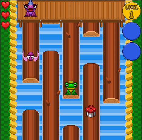 Live the life of a frog trying to reach his dream date at the end of the creek.